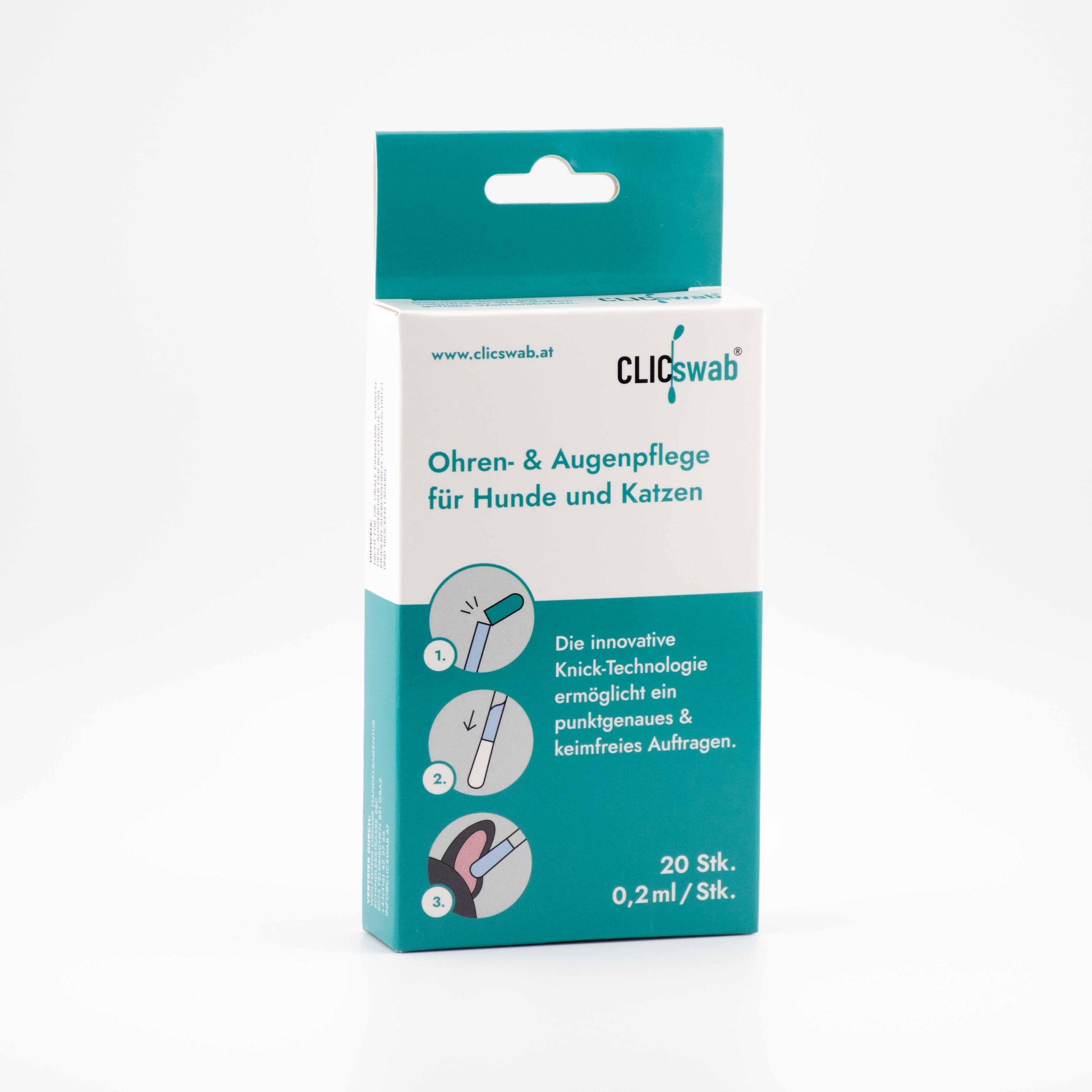 ClicSwab® Ohren- und augenpflegestäbchen sind praktisch für die regelmäßige pflege und hygiene von haustieren und helfen, infektionen vorzubeugen. Die gefüllten wattestäbchen enthalten eine sanfte reinigungslösung, die speziell für hunde und katzen entwickelt wurde.